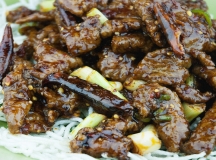 Sliced Pork, Chicken, Beef Sauteed with Baby Corn, Pea Pods, Water Chestnut, and Mushrooms with Mildly Spice Sauce.